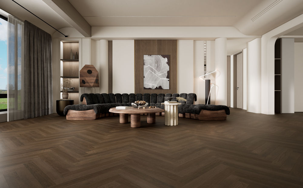 完美融合: 无论您的家居风格是偏向新古典主义的典雅,还是现代简约的清新,三杉地板的人字拼都能与之和谐共处。三杉地板出色的横向稳定性,与人字拼的多方向受力结构相得益彰,确保了长期的使用效果。
